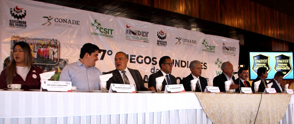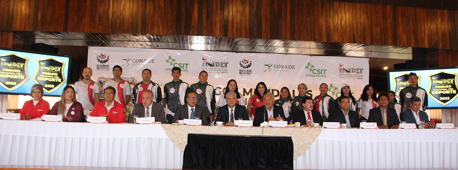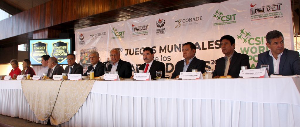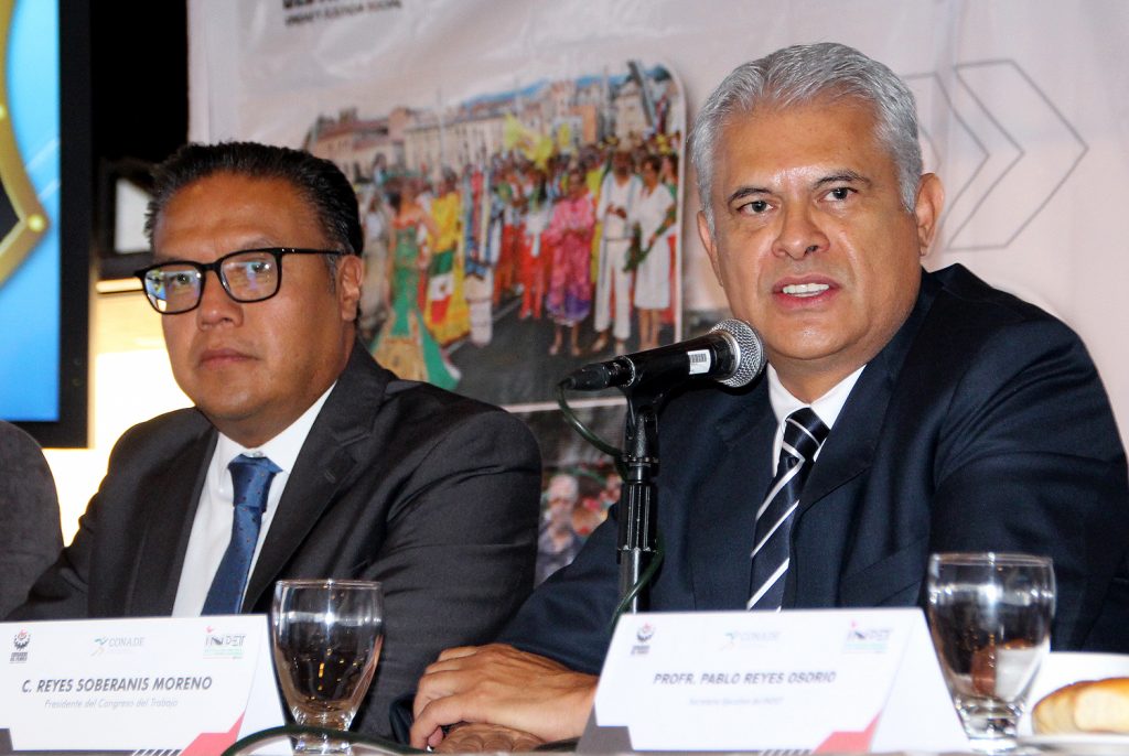 El Profesor Pablo Reyes Osorio, Secretario Ejecutivo del Instituto del Deporte de los Trabajadores, en presencia del licenciado Reyes Soberanis Moreno, presidente del Congreso del Trabajo y del INDET, dieron a conocer los detalles de la participación mexicana en el evento mundialista.