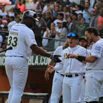 La igualdad se rompió en el tercer acto; con corredores en las esquinas, Samar Leyva sacó roletazo a la antesala, el cual tomó Agustín Murillo y sacó su disparo al plato, sin embargo, Leo Germán eludió al receptor en el plato, para timbrar la tercera carrera, más adelante, Chris Carter dio ventaja de par de anotaciones, con elevado de sacrificio.