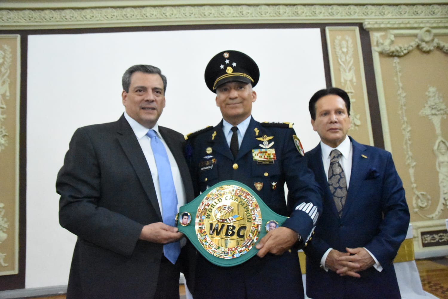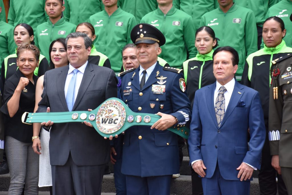El general Secretario de la Defensa Nacional, Luis Crescencio Sandoval González, recibió el cinturón de campeón mundial denominado Verde y Oro, la más alta distinción que otorga el Consejo Mundial de Boxeo (WBC, por sus siglas en inglés) para personalidades comprometidas con causas en beneficio de México.