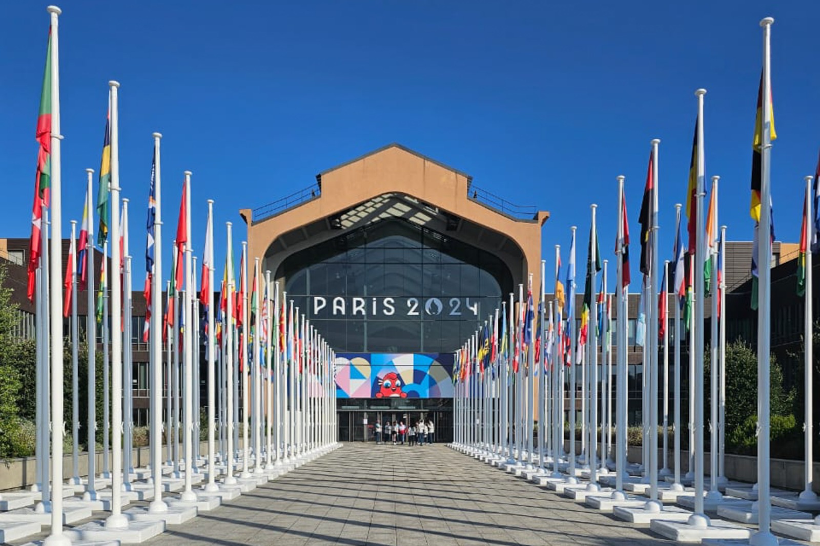 El edificio tiene una ligera vista hacía el Sena, y ya fue vestido con pendones tricolores a la espera de la llegada de los primeros competidores que en este caso será el equipo de tiro con arco, liderado por la tres veces olímpica, Alejandra Valencia junto con Ángela Ruiz y Ana Paula Vázquez.