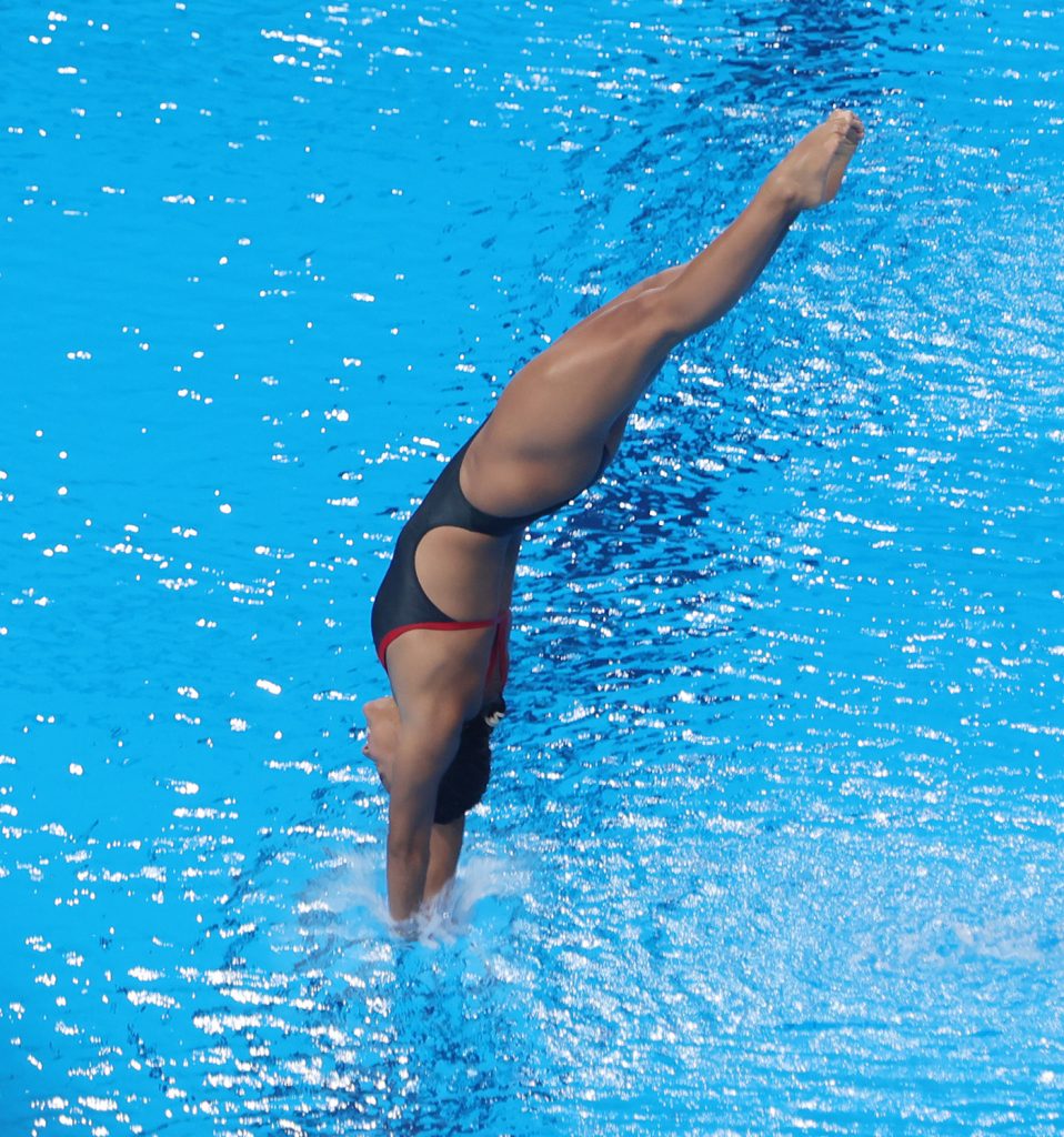 El último salto la colocó en el top mundial. Subió con lentitud las escaleras y mirando en todo momento sus pasos, se frotó las manos, aventó la toalla corta y se lanzó por el aire, dos vueltas y medias hacia adelante. Buena ejecución y la entrada fue casi perfecta: 60 unidades. Salió del agua y con los brazos y la sonrisa en alto, saludo hacia las gradas. Abrazo a su coach que gritó con fuerza el logro histórico de la joven de 19 años.