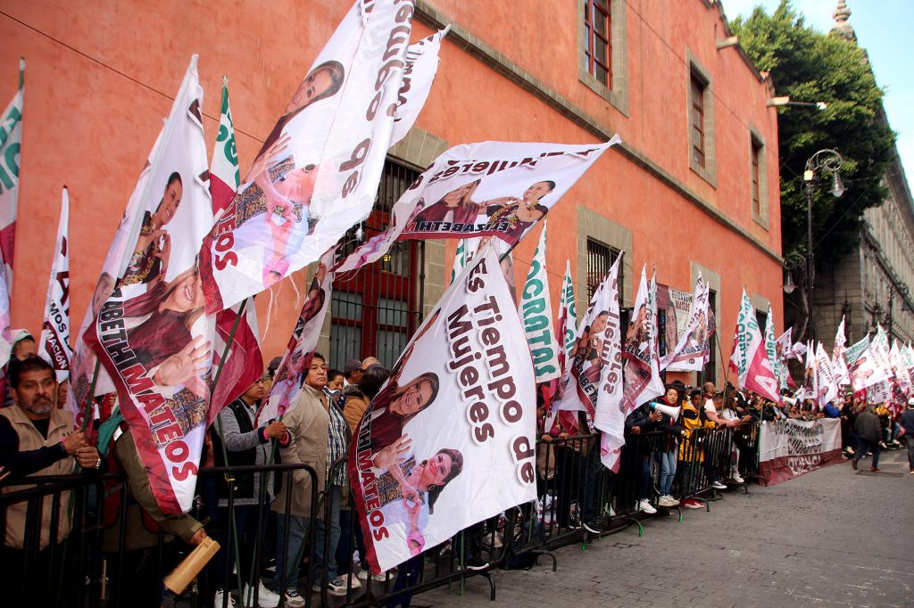 Nuevamente la maquinaria electoral de Morena en la ciudad de México se hizo notar con los cientos de personas que fueron llevados para hacer la valla desde el eje central hasta la esquina de la calles de Donceles.