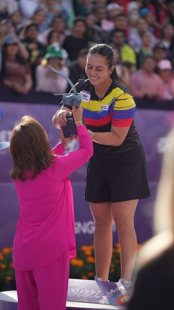 Por su parte, la colombiana Sara López obtuvo la medalla de oro al superar 147-146 a Meeri-Marita Paas, de Estonia, para sumar su novena corona en Final de Copa del Mundo, siete de las cuales han sido consecutivas, extendiendo su legado como una de las arqueras históricas en la modalidad de compuesto y la más dominante desde la creación del certamen en 2006.