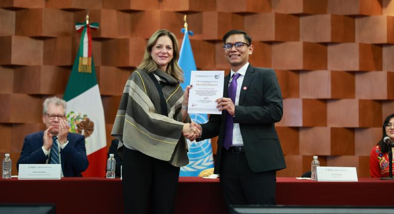 En el marco de un evento celebrado en la Secretaría de Relaciones Exteriores (SRE), en el que se presentaron los resultados de la 19ª edición del programa de la Delegación Juvenil de México en la Asamblea General de las Naciones Unidas (AGONU), ONU México destacó su firme compromiso con la participación activa de las juventudes mexicanas en la toma de decisiones globales.