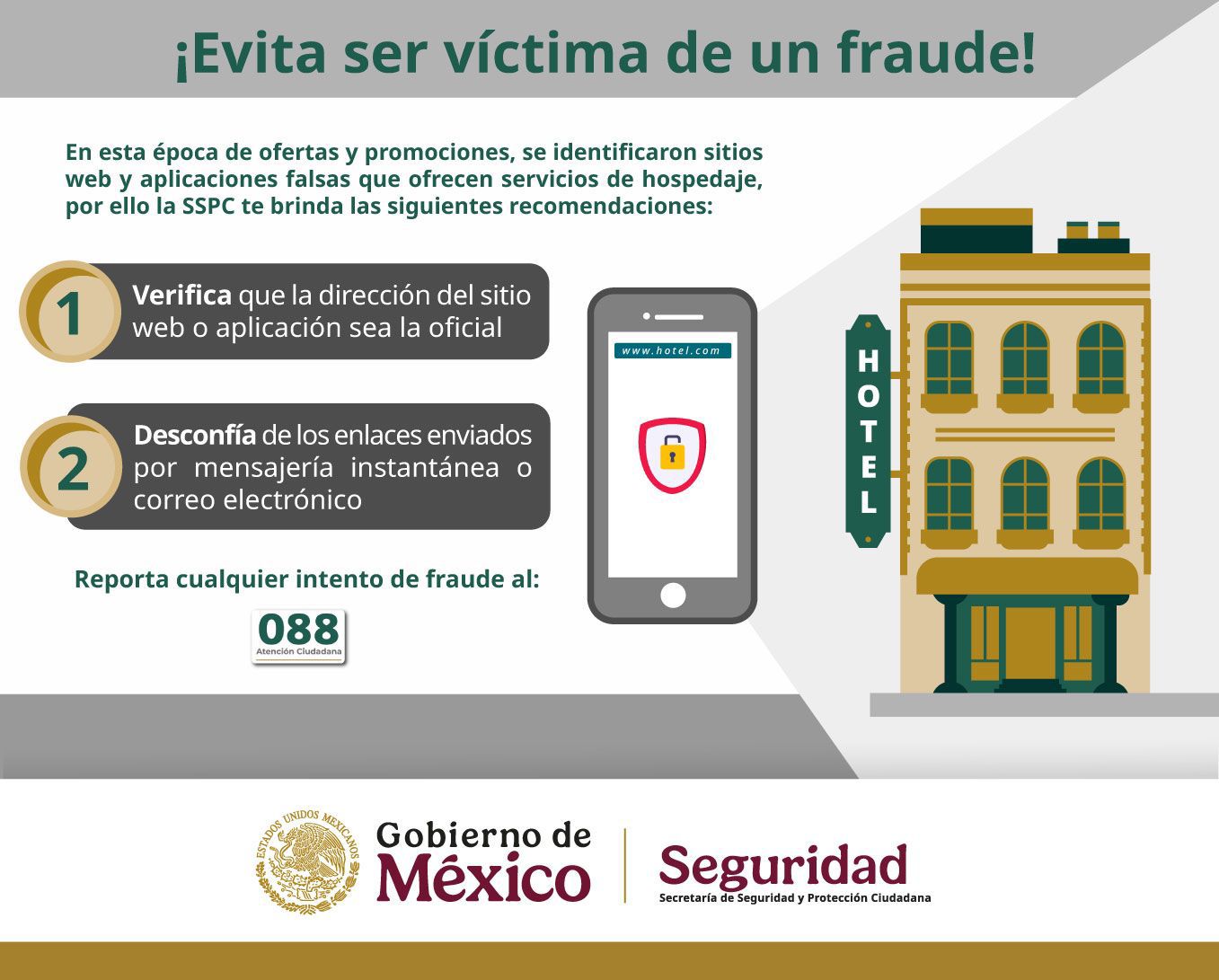 Durante el periodo vacacional por temporada decembrina, la Secretaría de Seguridad y Protección Ciudadana (SSPC), a través de la Dirección General de Gestión de Servicios, Ciberseguridad y Desarrollo Tecnológico, alerta a la ciudadanía sobre sitios web y aplicaciones falsas que ofrecen servicios de hospedaje, y emite recomendaciones para evitar ser víctimas de fraude.