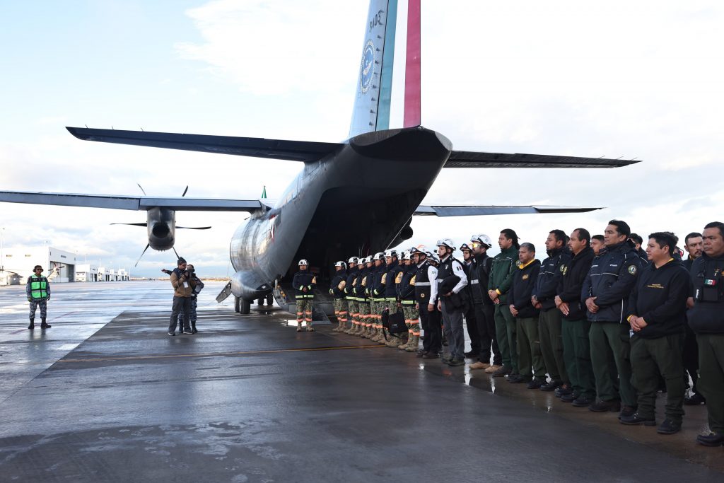 La misión despegó desde la base militar de Santa Lucía, a las 8:00 horas de este sábado, en dos aeronaves pertenecientes a la Secretaría de la Defensa Nacional (Defensa): un avión Hércules y un Sparta.