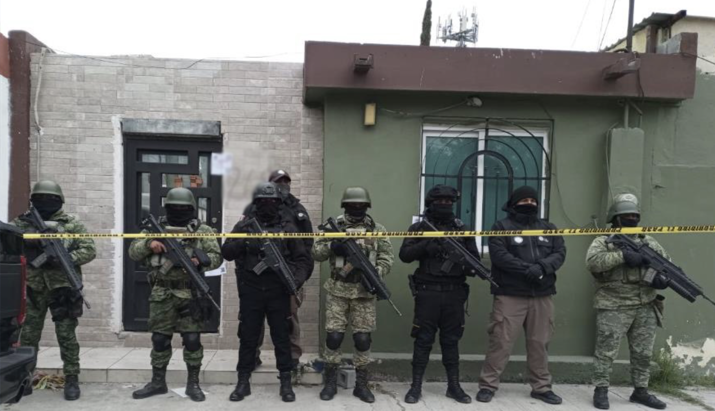 -En Apodaca, elementos del Ejército Mexicano, FGR y Policía Estatal catearon un inmueble en donde aseguraron tres armas largas, nueve cargadores y equipo táctico.
