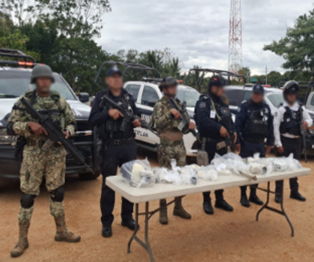 -En Cajeme, elementos del Ejército Mexicano, GN, Semar y Policía Estatal detuvieron a tres personas, les aseguraron dos armas largas, cargadores, cartuchos, diversas dosis de droga y dos chalecos tácticos.