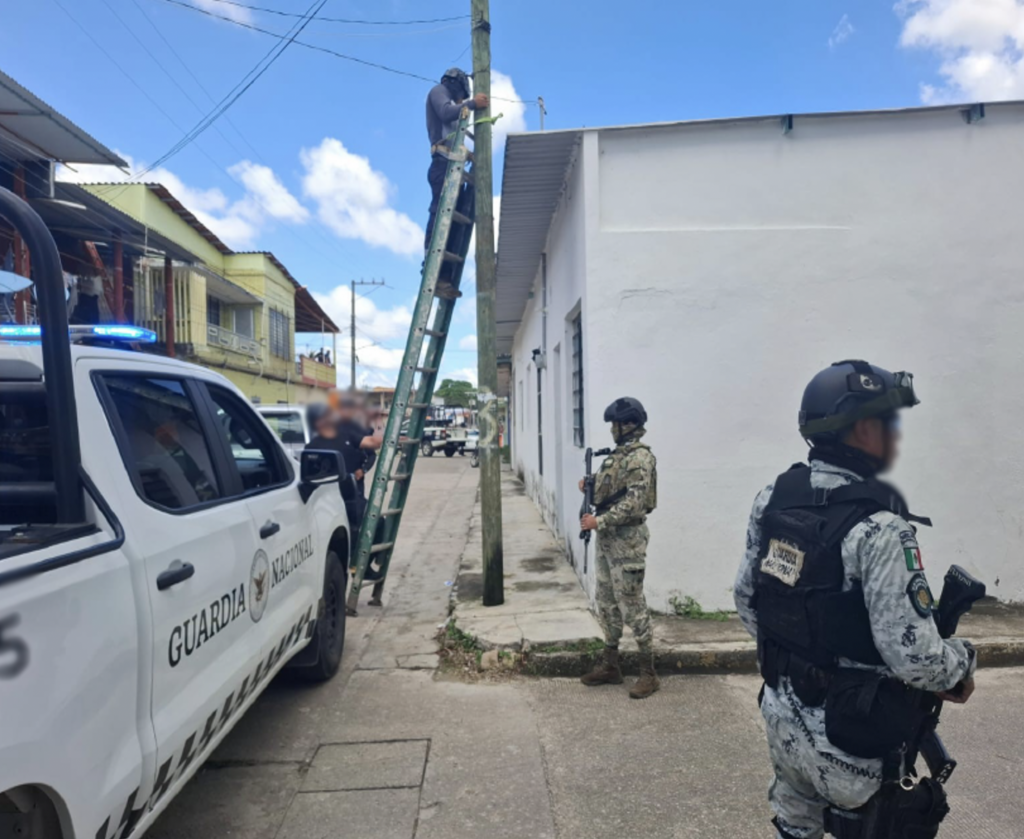 -En Las Choapas, en diversas colonias del poblado, elementos del Ejército Mexicano, GN, Semar, Policía Municipal y Policía Estatal desinstalaron y retiraron 29 cámaras de seguridad no autorizadas.