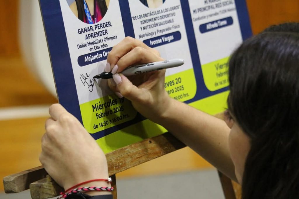 Alejandra Orozco impartió la conferencia “Ganar, Perder, Aprender” en donde habló de su trayectoria dentro del deporte; nos narro sobre el esfuerzo y perseverancia que le permitió competir en varios Juegos Olímpicos y así lograr dos medallas en los clavados.