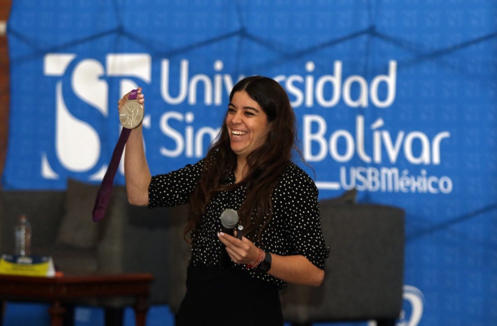 La doble medallista olímpica hablo en el ciclo de Conferencias de la Semana Deportiva USB 2025 en las instalaciones de la Universidad Simón Bolívar de la Ciudad de México.