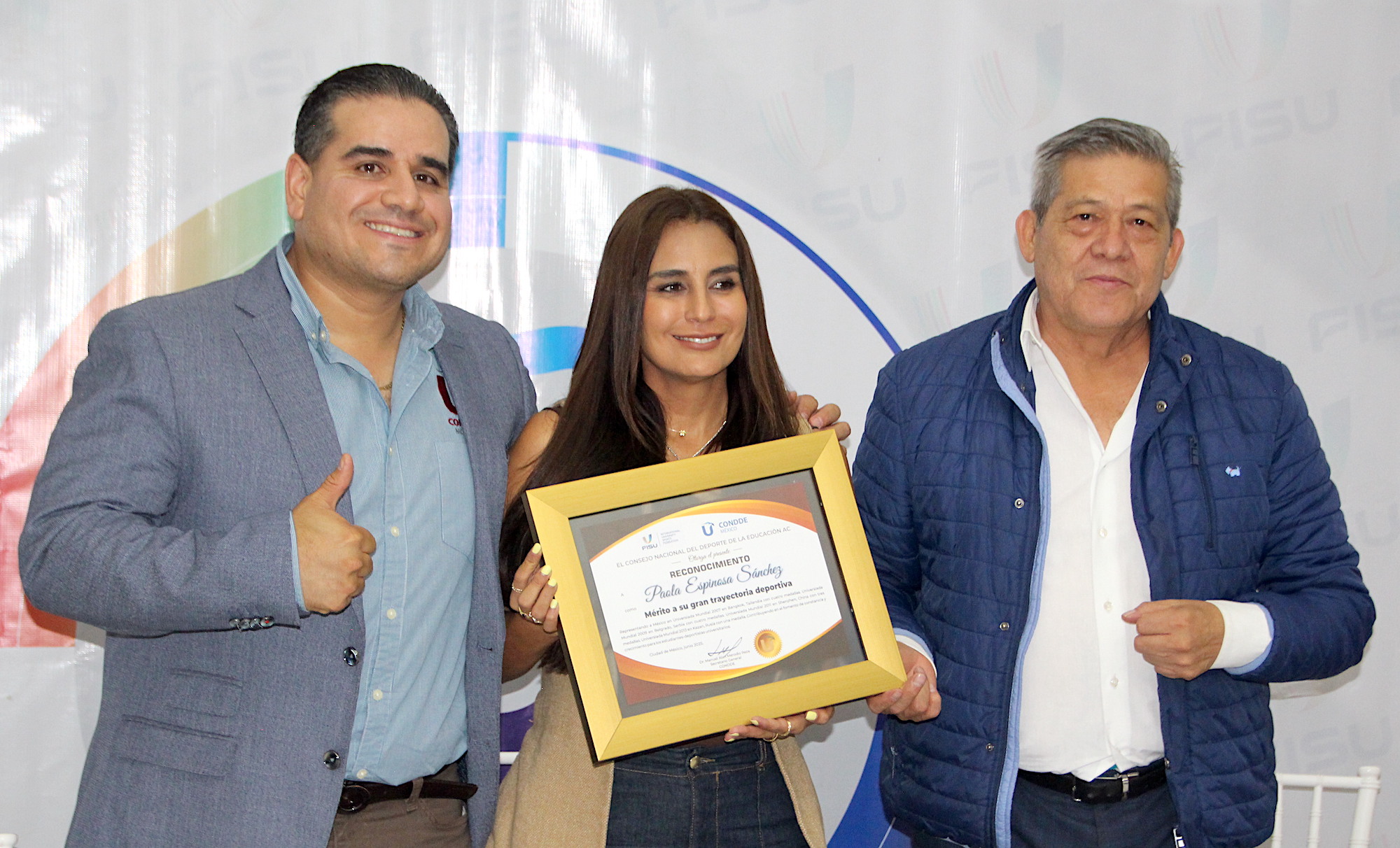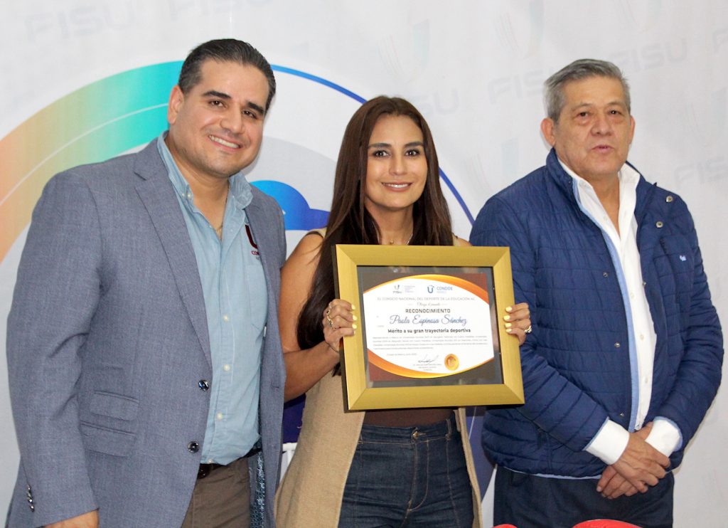 Durante el acto, también se recordó la participación de Espinosa en la Universiada Mundial de 2009 en Belgrado, Serbia, donde obtuvo medalla de oro, consolidándose como una de las principales exponentes del deporte estudiantil mexicano.